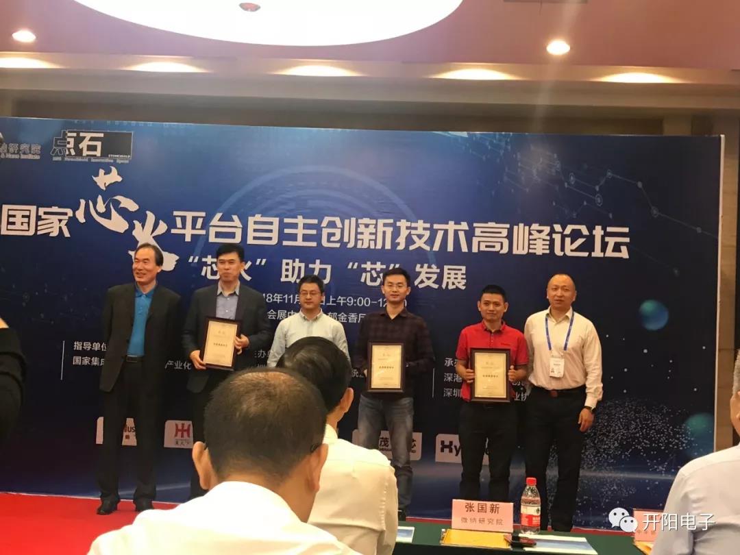 开阳电子参加国家“芯火”平台自主创新技术高峰论坛,荣获“芯火优秀服务项目”奖牌