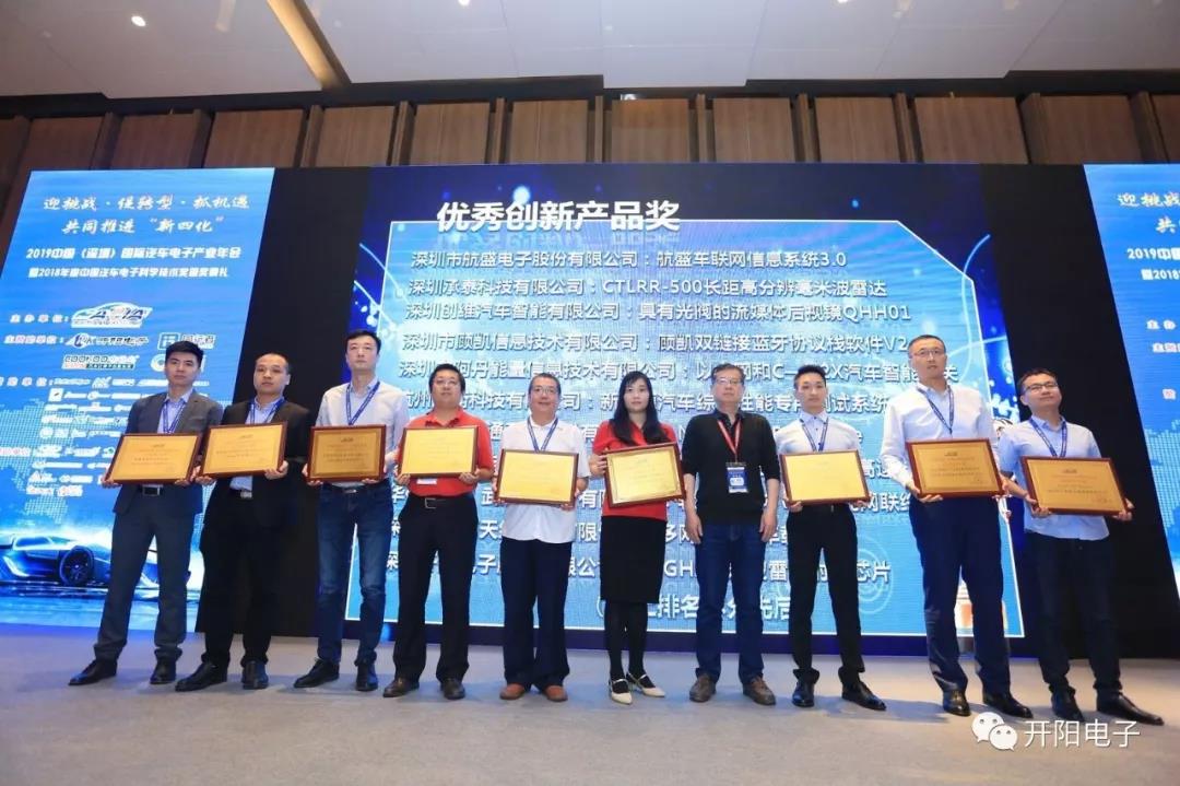 汽车电子科学技术奖从2018年9月开始征集到2019年3月30日颁奖,评奖活动历时6个月,参评企业来自21个城市,有164家企业的参与,共有252个项目参加评选,最终由独立专家评审团的20多位专家,保证评选的权威,恪守公平、公正、公开、回避的原则,经过三轮评审,力求评出最实至名归的优秀产品及优秀企业。本次与开阳电子同时获奖的还有航盛、创维等。